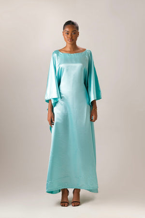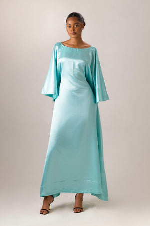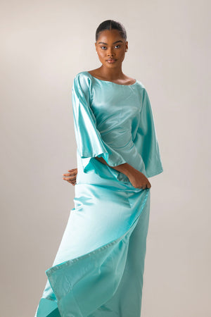 The high-shine satin fabric enhances the colour’s vibrancy while creating a soft, fluid drape.